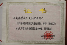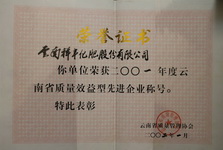 2001年度云南省質(zhì)量效益型先進企業(yè)