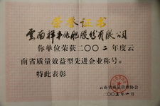 2002年度云南省質(zhì)量效益型先進企業(yè)