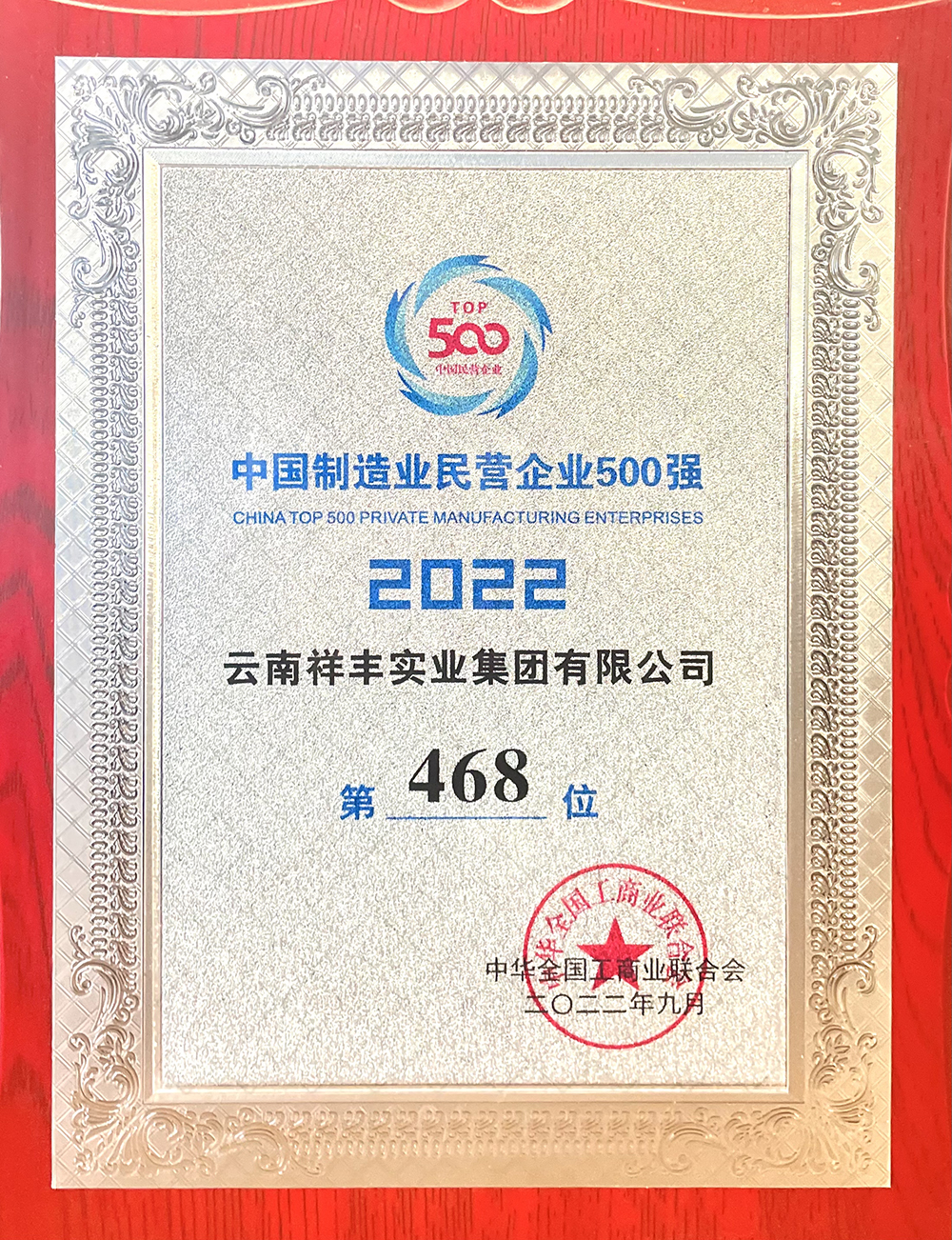 2022中國(guó)制造業(yè)民營(yíng)企業(yè)500強(qiáng)(位列第468位)