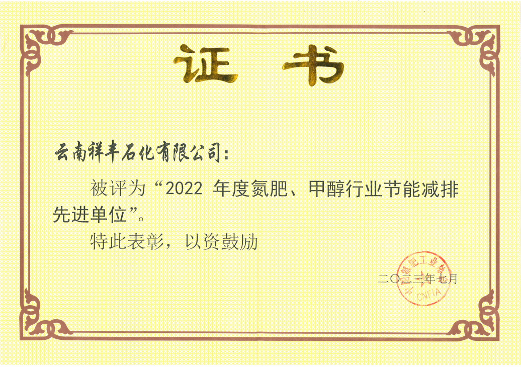 云南祥豐石化榮獲“2022年度氮肥、甲醇種行業(yè)節(jié)能減排先進(jìn)單位”、“合成氨、甲醇生產(chǎn)原料燃料動(dòng)力消耗對(duì)標(biāo)”標(biāo)桿單位、水效“領(lǐng)跑者”...