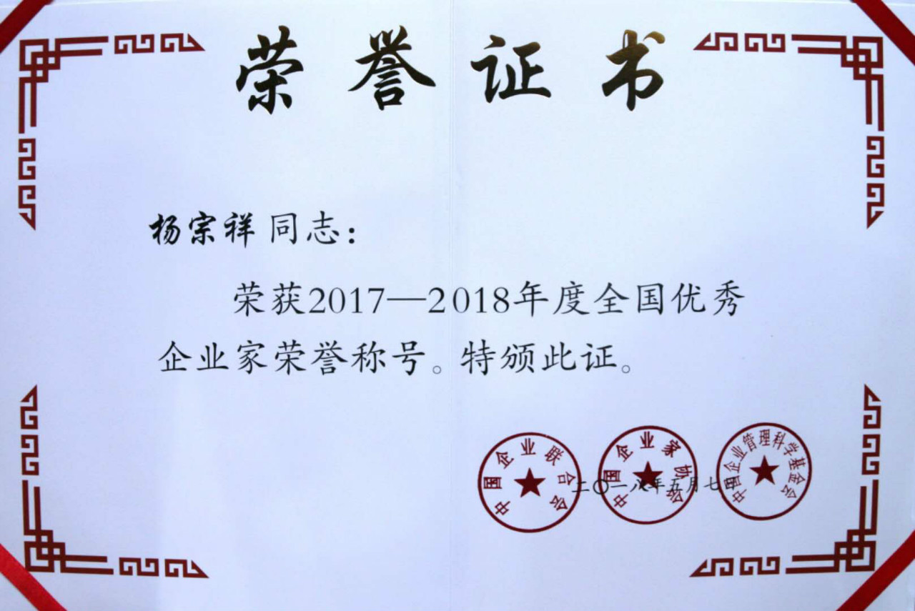 全國優(yōu)秀企業(yè)家榮譽(yù)稱號(hào)