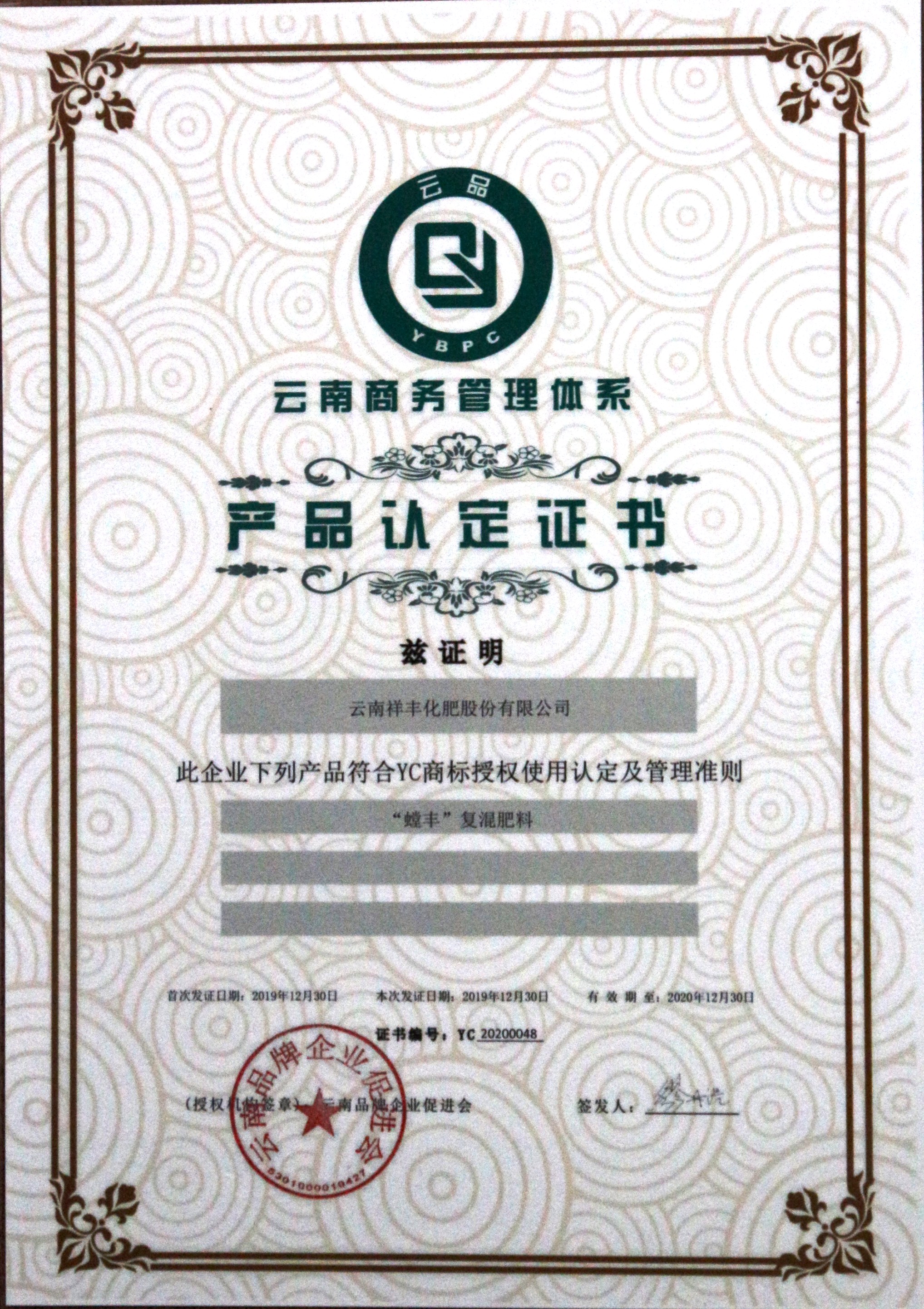 祥豐金麥“滇金麥”磷酸二銨符合YC商標(biāo)授權(quán)使用認(rèn)定及管理準(zhǔn)則